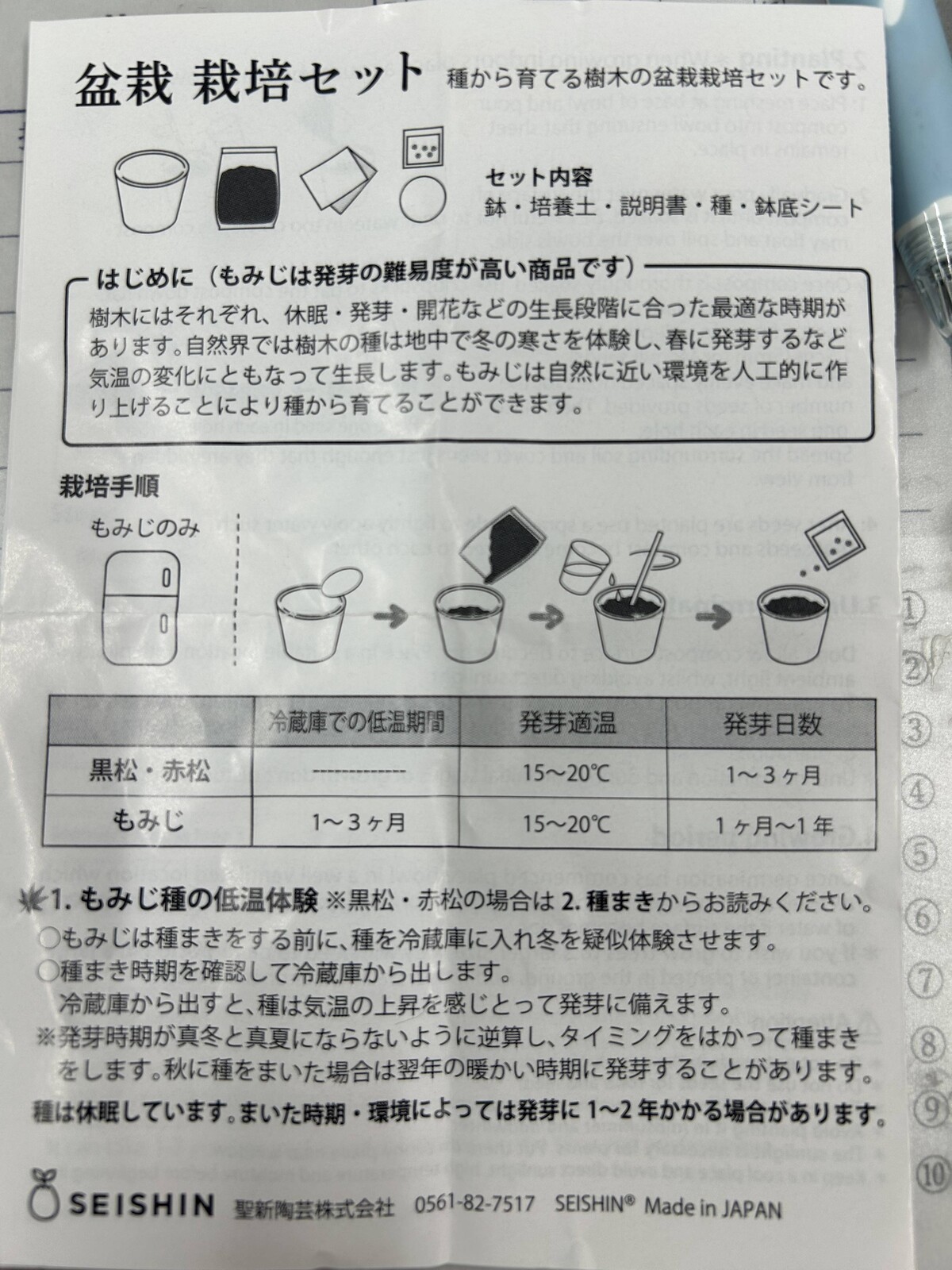 もみじも松も今から種蒔きして乾燥させ過ぎないように室温で管理すれば