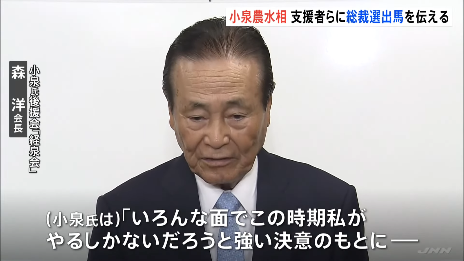 小泉農水大臣「私がやるしかないだろうという強い決意だ」 地元支援者らに自民党総裁選への出馬の意向を伝える