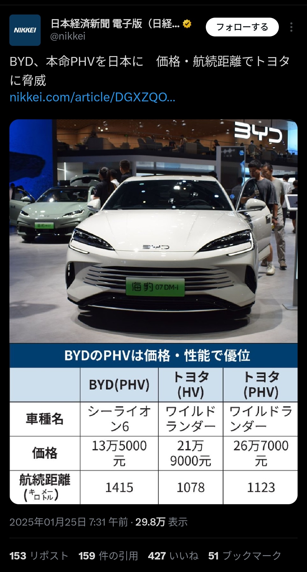10年後とかには日本でも普通にBYD乗ってるだろう