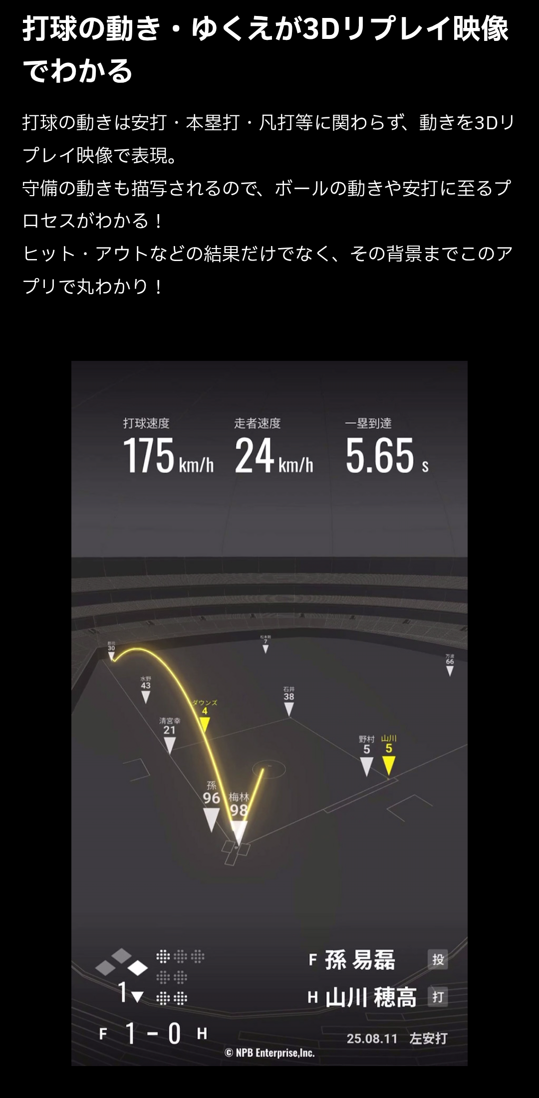 一球速報(ホークアイトラッキングデータを用いたリアルタイム速報)