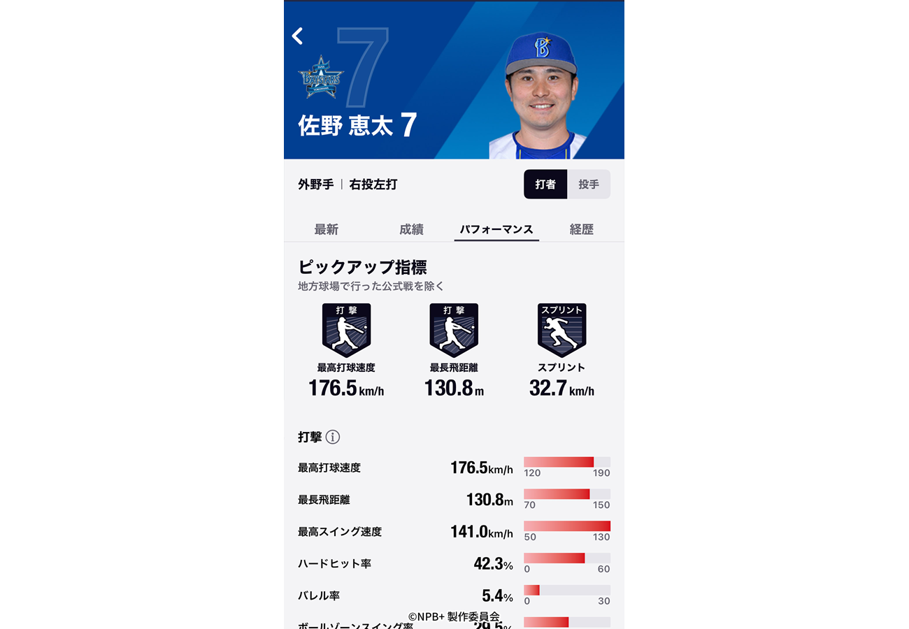 選手情報(セ・パ所属12球団全選手の最新成績、パフォーマンス、経歴などを搭載)