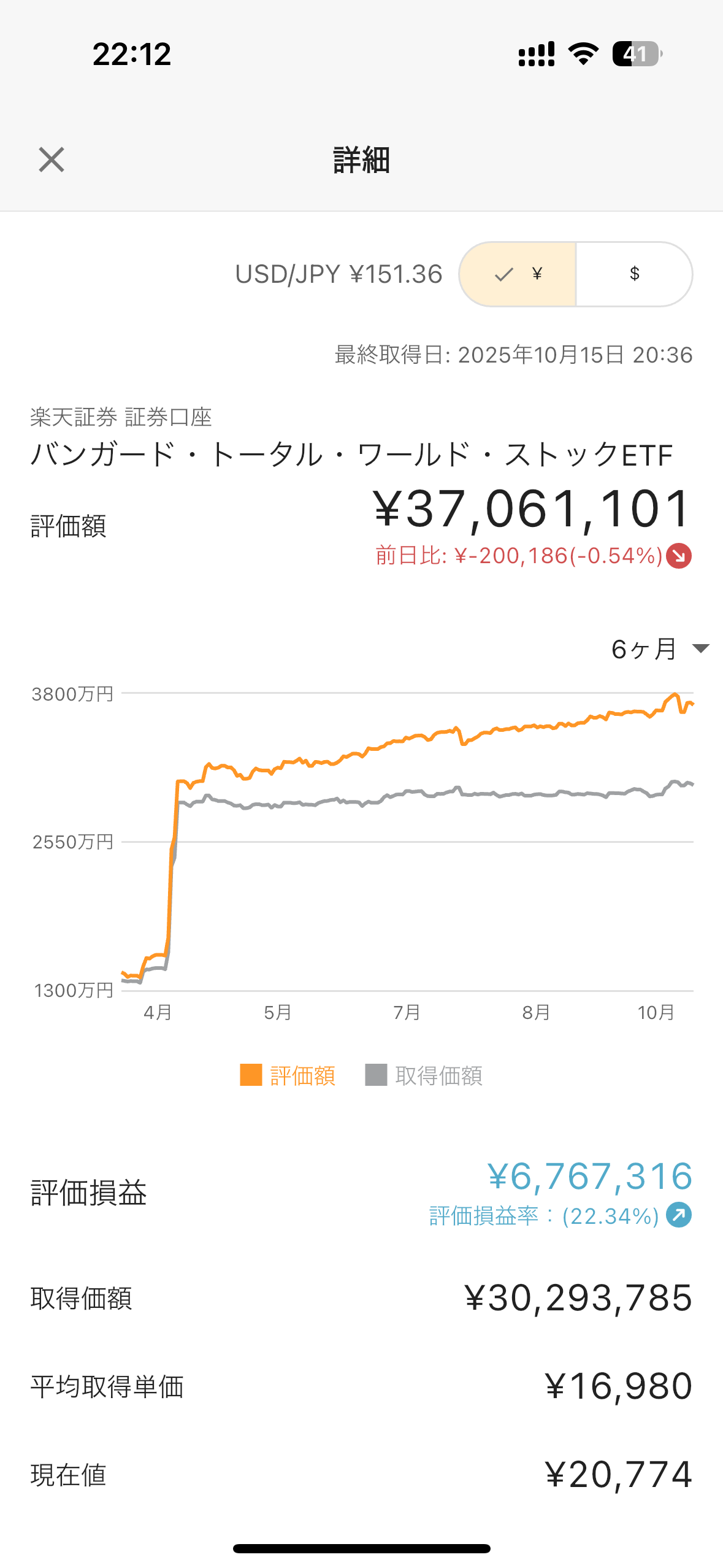 上がってる時期に元金増やして下がった途端入れるの辞めててワロタ