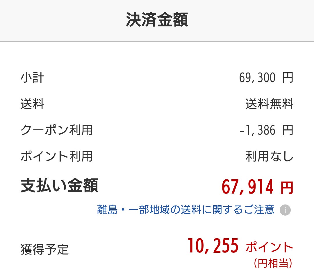 2%引きクーポンと期間限定ポイントアップで楽天モバイルで買うよりお得なはず。楽天経済圏民だからポイントは重要。