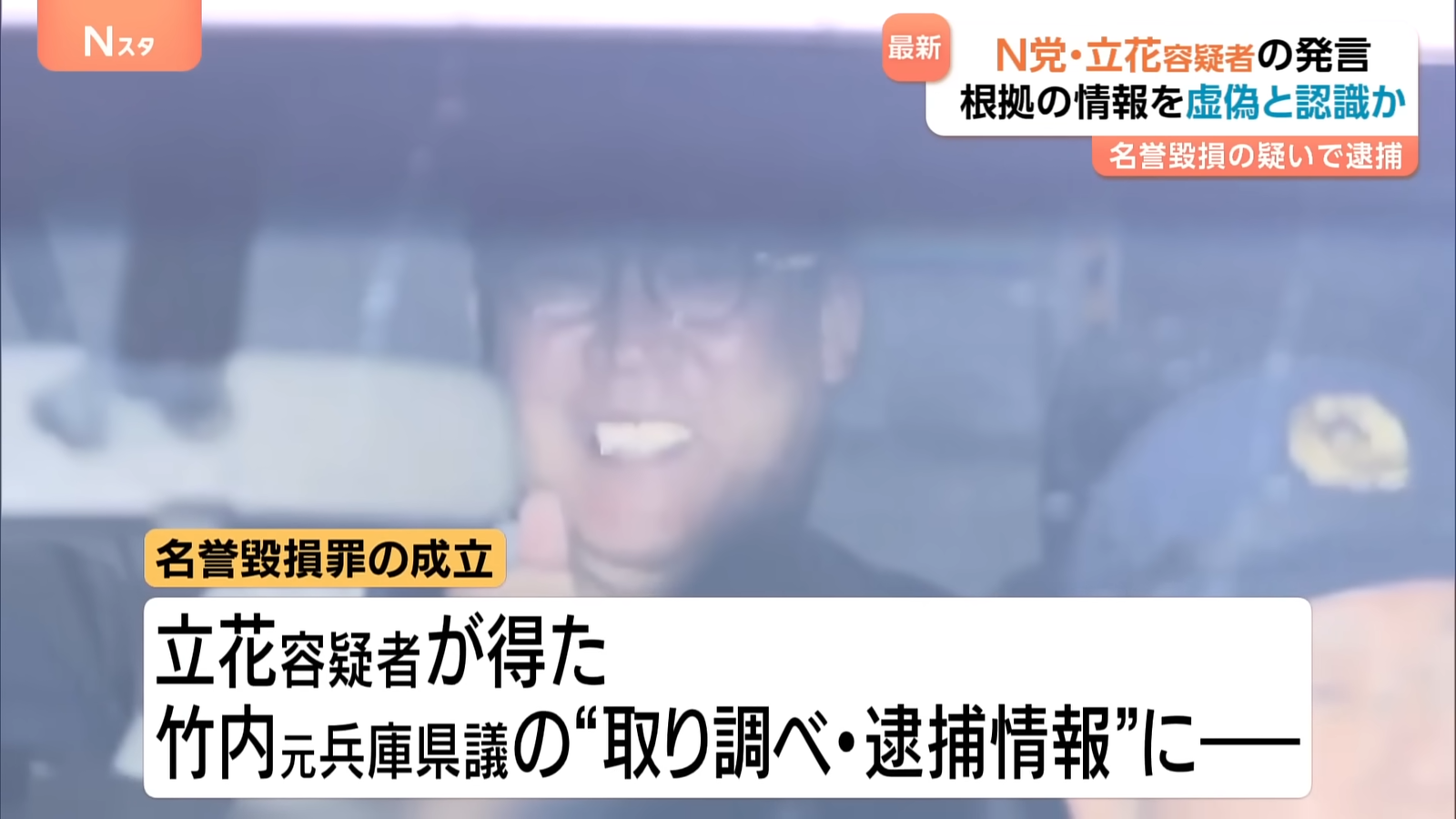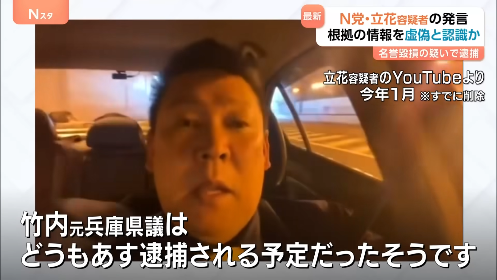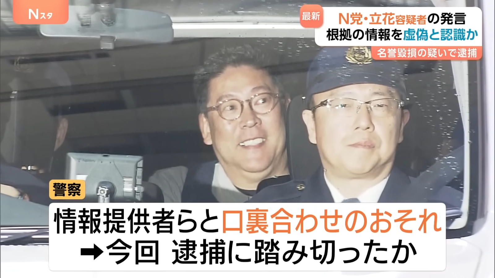 N党・立花孝志容疑者 発言「根拠」の情報を“虚偽と認識”か 名誉毀損の疑いで逮捕 警察は情報協力者らとの“口裏合わせ”のおそれ考慮し逮捕か