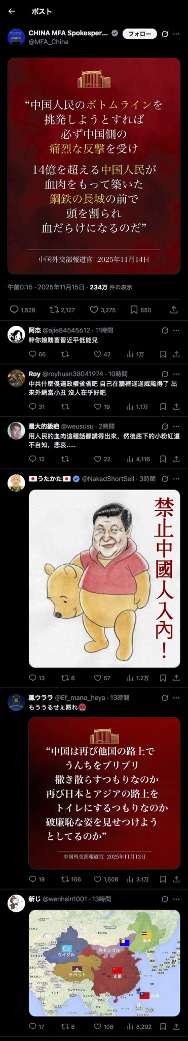 中共がいうには14億人が怒ってるはずなのに(涙)