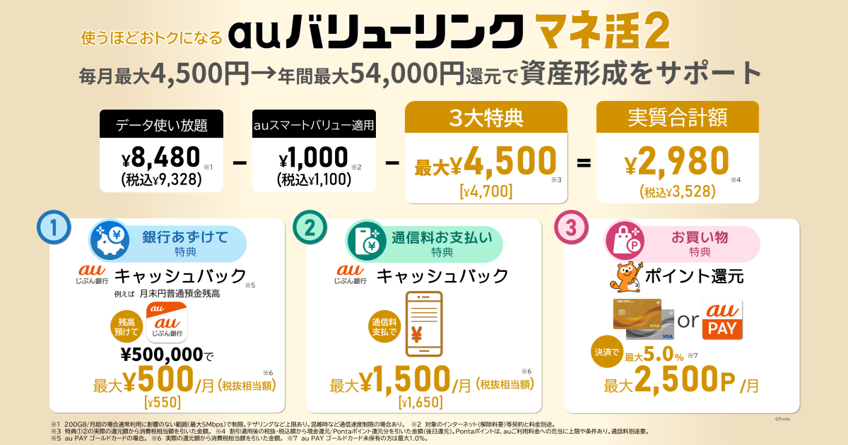 au、新料金プラン「auバリューリンク マネ活2」発表。