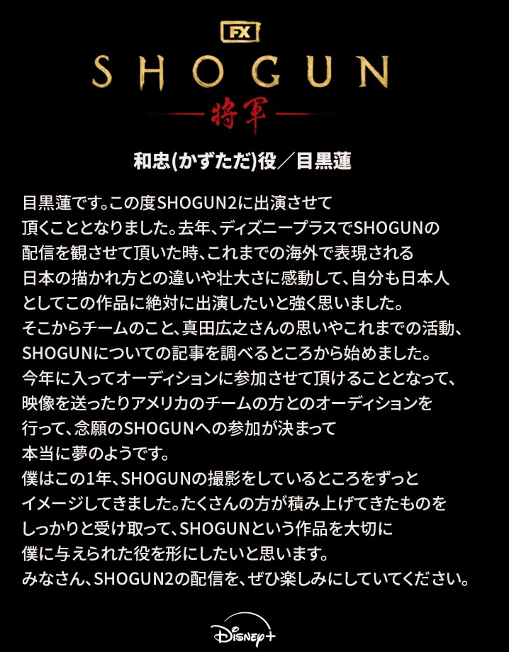 『SHOGUN 将軍』シーズン2にSnow Manの目黒蓮 出演決定