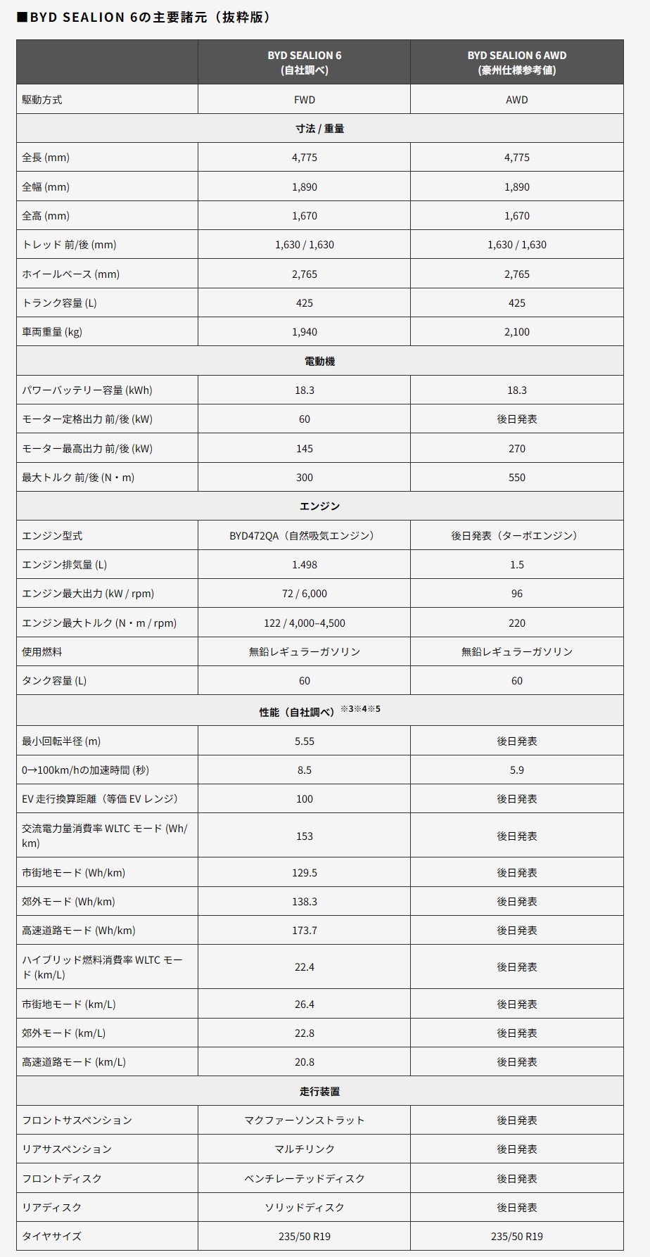前輪駆動モデルの「SEALION 6」と四輪駆動モデルの「SEALION 6 AWD」の2グレード展開。