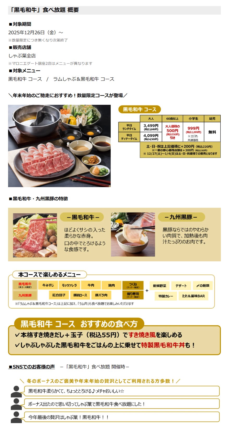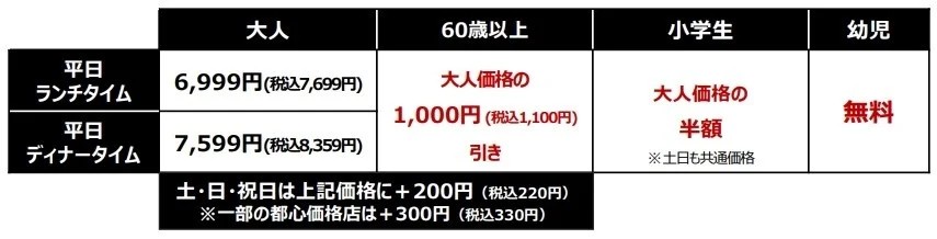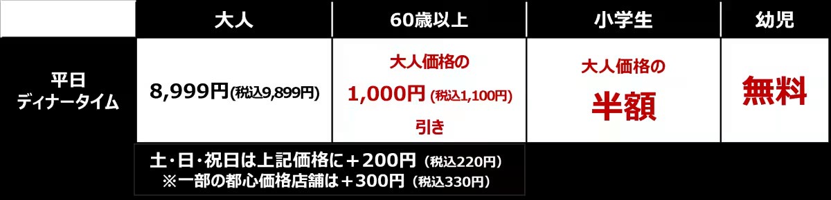 平日ディナー100分 全店舗 9,899円