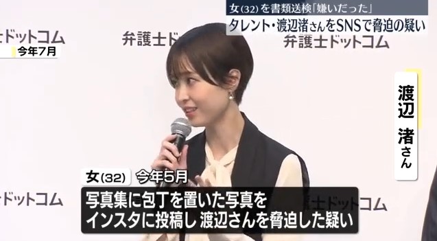 【独自】渡辺渚さんを脅迫の疑いで32歳女を書類送検 警視庁 渡辺さんの写真集に包丁置いた写真を投稿…「行きすぎた行為で申し訳ない」