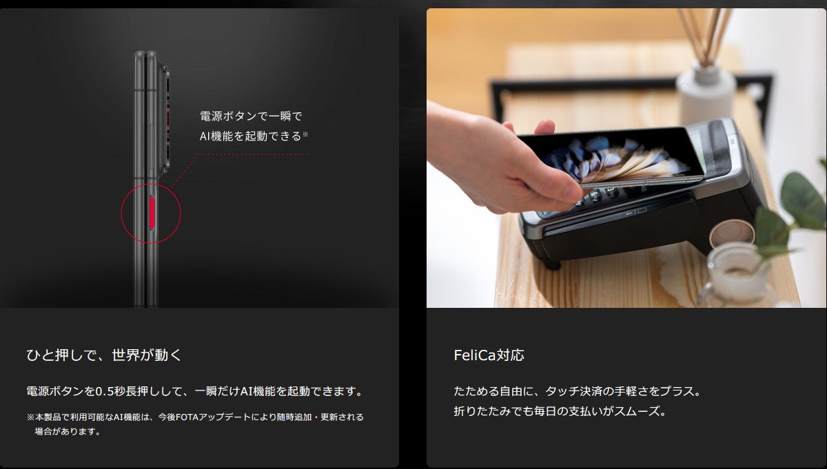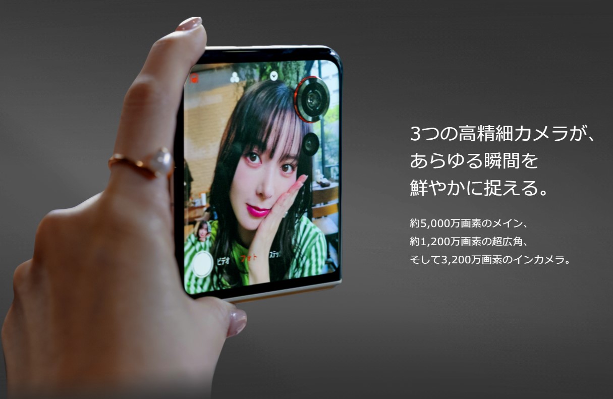 - 前面カメラ:メインディスプレイ側2000万画素、カバーディスプレイ側2000万画素
