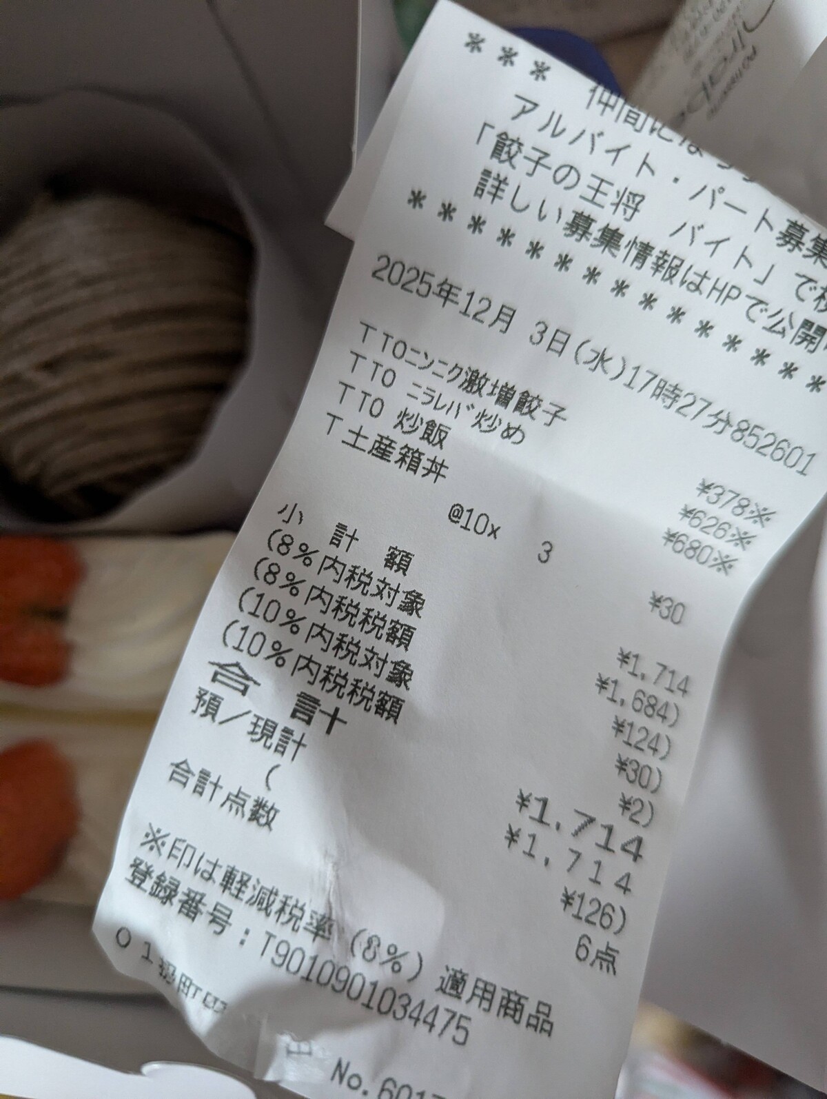王将は餃子とチャーハンとレバニラ炒めで1700円