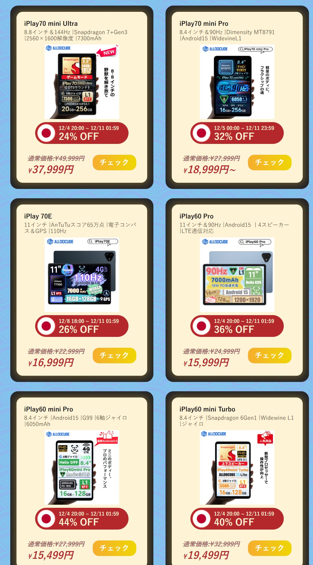 iPlay70eすげー人気だがたぶんiPlay70Proのほうが液晶綺麗だと思うんだけどな