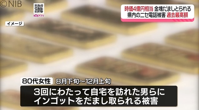 金塊4億円分 検察官を名乗る男らに詐取「取り調べ」名目で資産聞き出す 犯人グループが被害者に「警察に相談してください」との電話で発覚【長崎】
