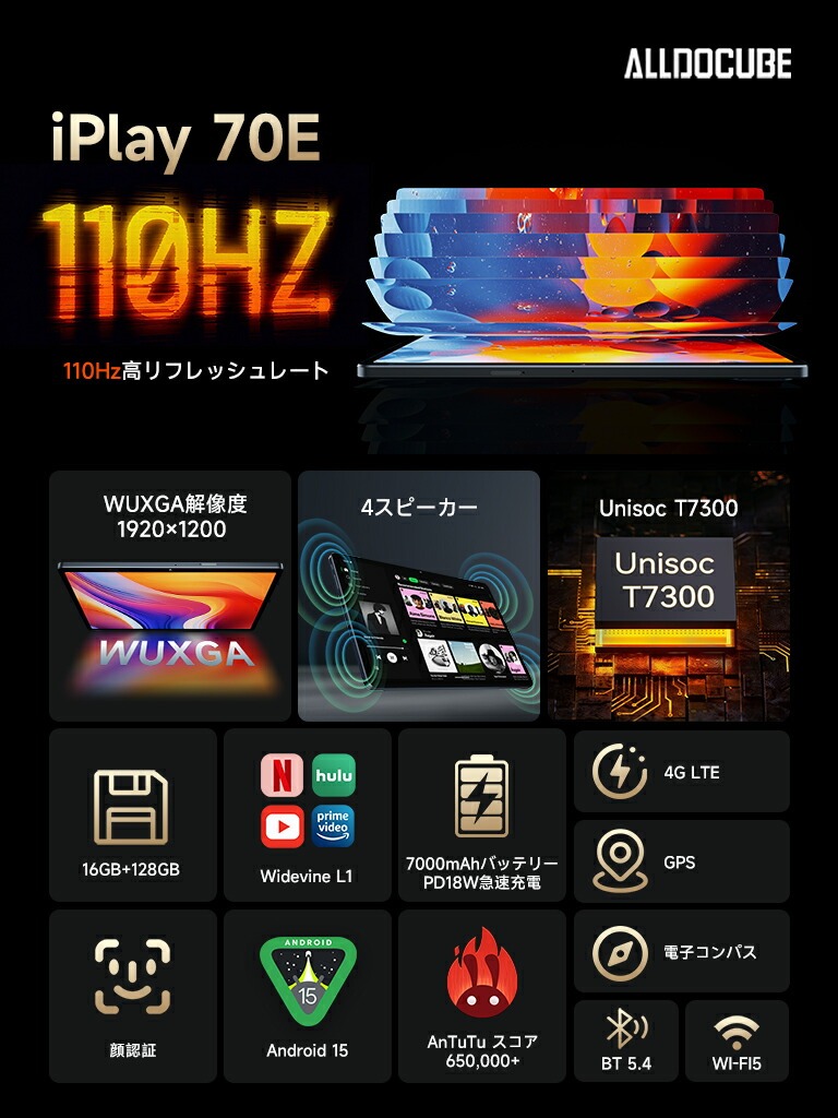 - 通信機能:Wi-Fi a/b/g/n/ac、Bluetooth5.4、4G、3G、GPS/Beidou/Galileo/GLONASS