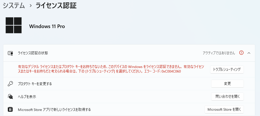 非ボリュームライセンスキーだとすると、どこかの誰かに使い回されたんだろう。