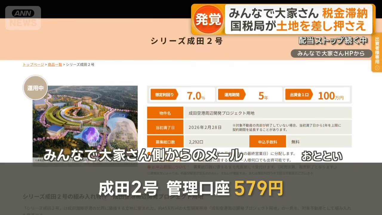 「みんなで大家さん」税金滞納 国税局が大阪の土地を差し押さえ 配当停止続くなか(テレ朝NEWS)