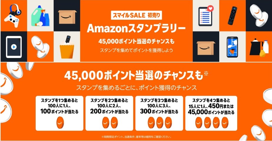 Amazonスタンプラリー 最大45,000ポイント(1/10まで)