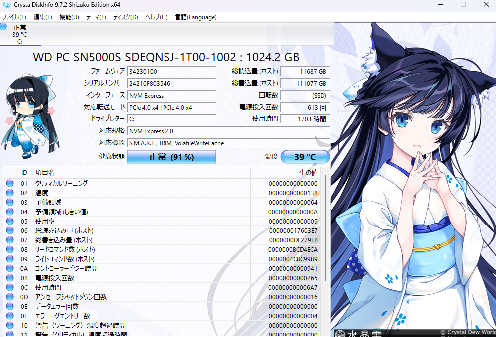 1TBのディスクですでに111TBも書き込みって中々だけどな