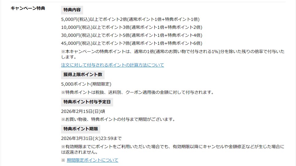 獲得上限ポイント数:5,000ポイント(期間限定)