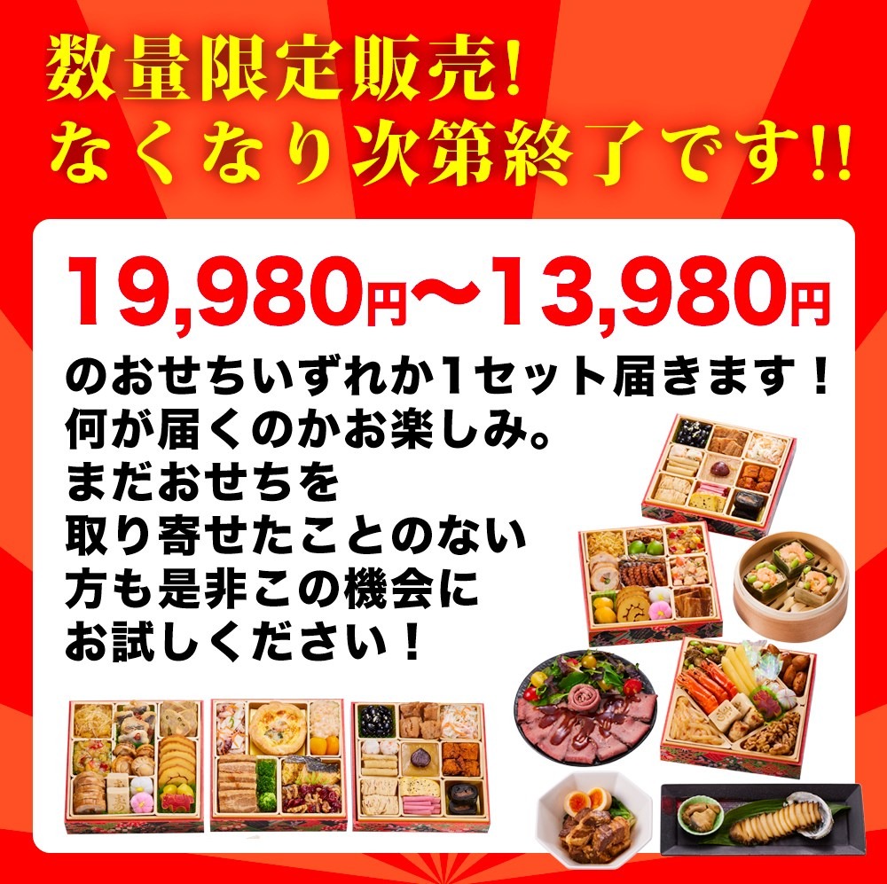 ▼下記のおせちのうち、いずれか1種をランダムでお届け