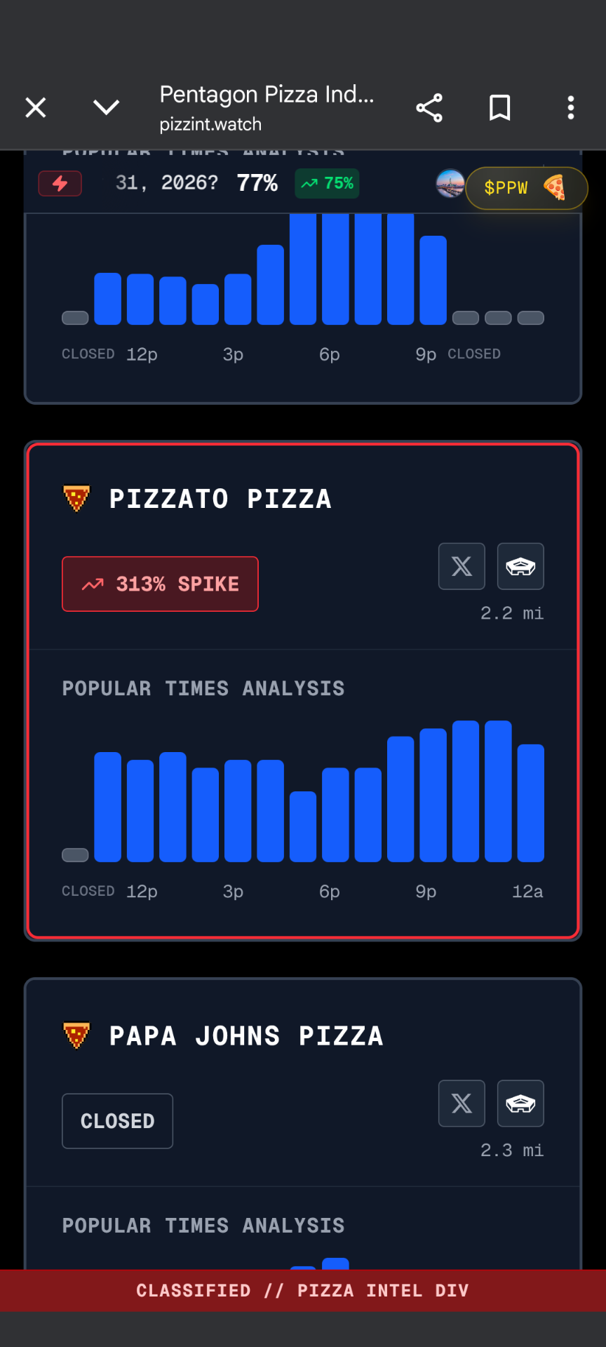 ペンタゴンのピザ屋が大繁盛(´・ω・`)