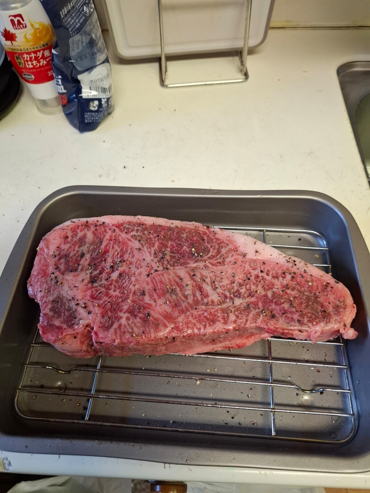 A5サーロインだから肉自体は胡椒と塩のみで味付けしたかった!