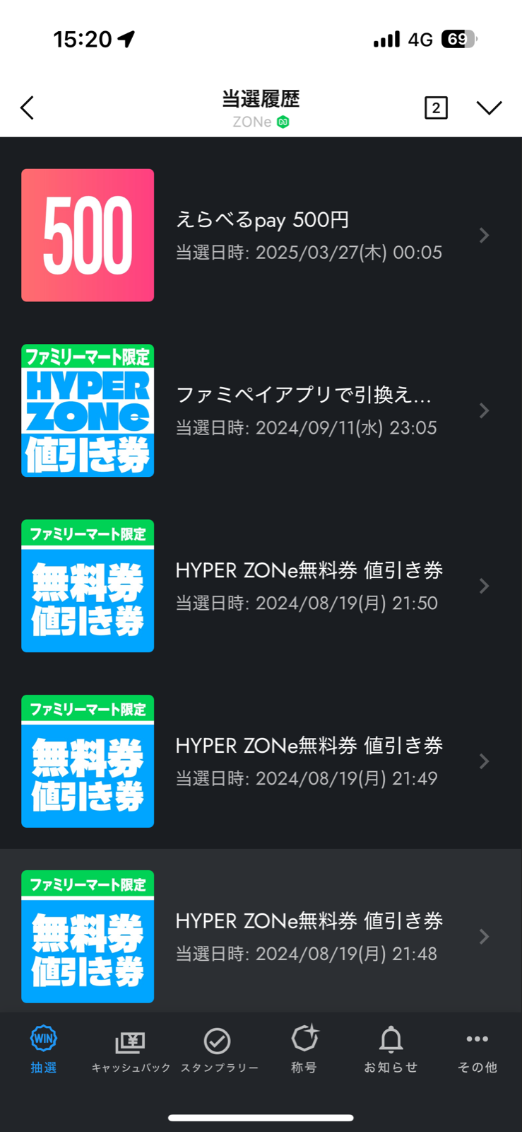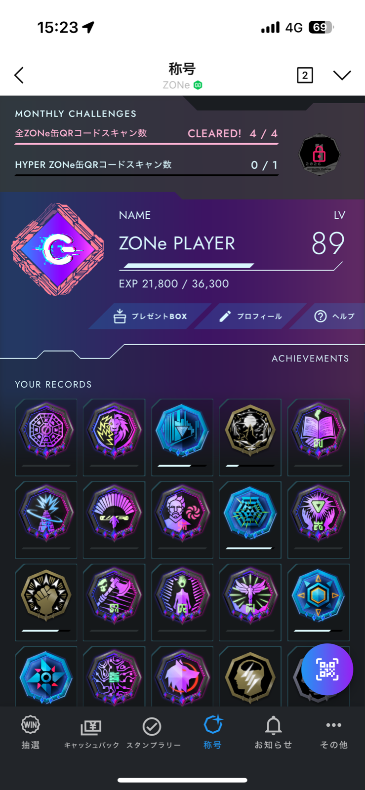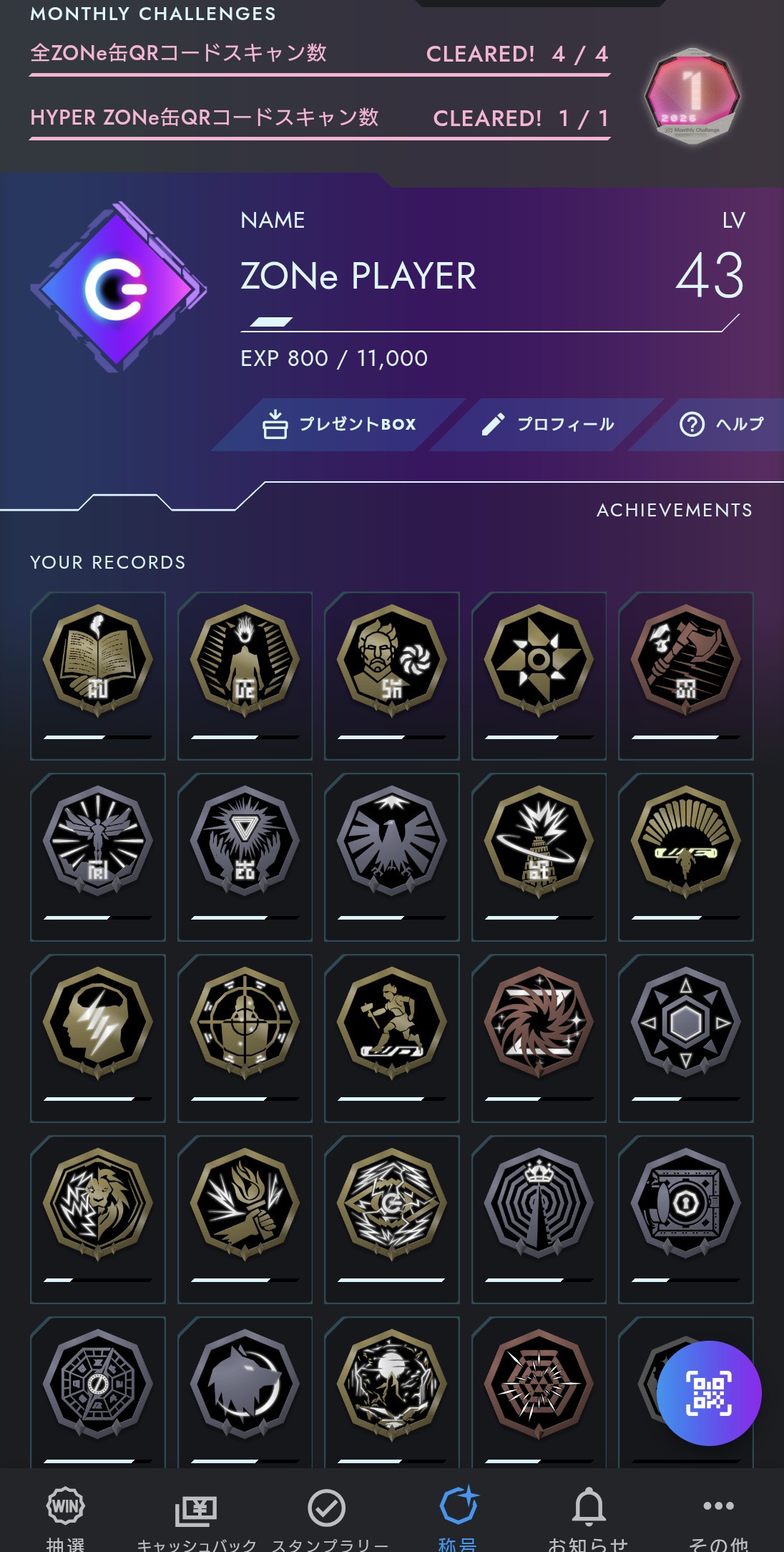 で、その当日中にZONEの缶に貼ってあるシールのQRコードをスキャンすると10円と経験値みたいなのが貯まるんだよ