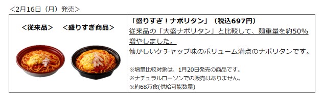 「盛りすぎ!ナポリタン」(税込697円)