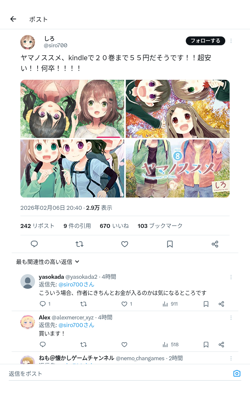 ヤマノススメ1~20巻1100円