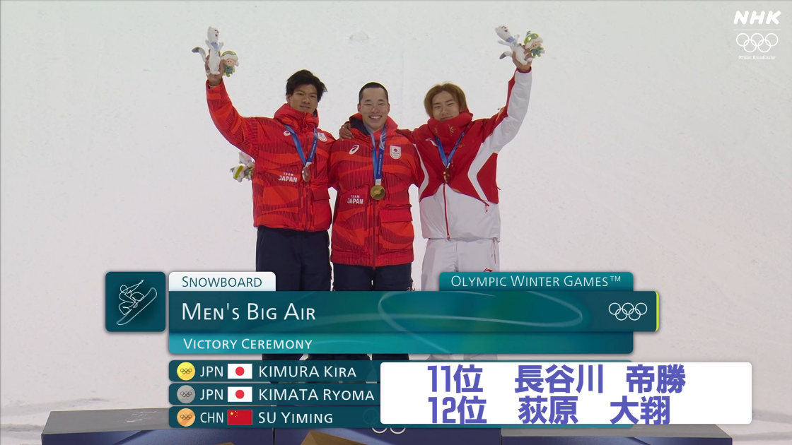 【五輪】日本勢ワンツー!木村葵来が日本の金メダル1号!木俣椋真も銀!…スノボ男子BA