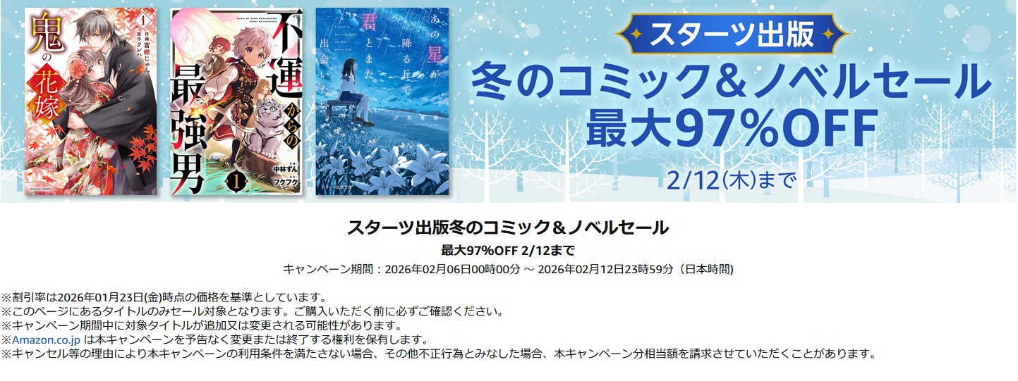 【最大97%OFF】スターツ出版冬のコミック&ノベルセール(2/12まで)