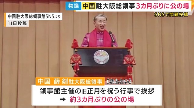 「汚い首は斬ってやる」とSNS投稿の大阪駐在中国総領事 3カ月ぶりに公の場に 日本政府に対し「実際の行動で中日関係の政治的基盤を守るよう促す」 日本政府は強く抗議