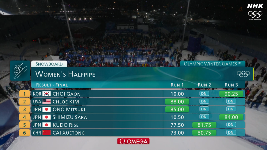 1位の韓国が90点もたたき出すほど良かったように見えなかったのは俺だけか?