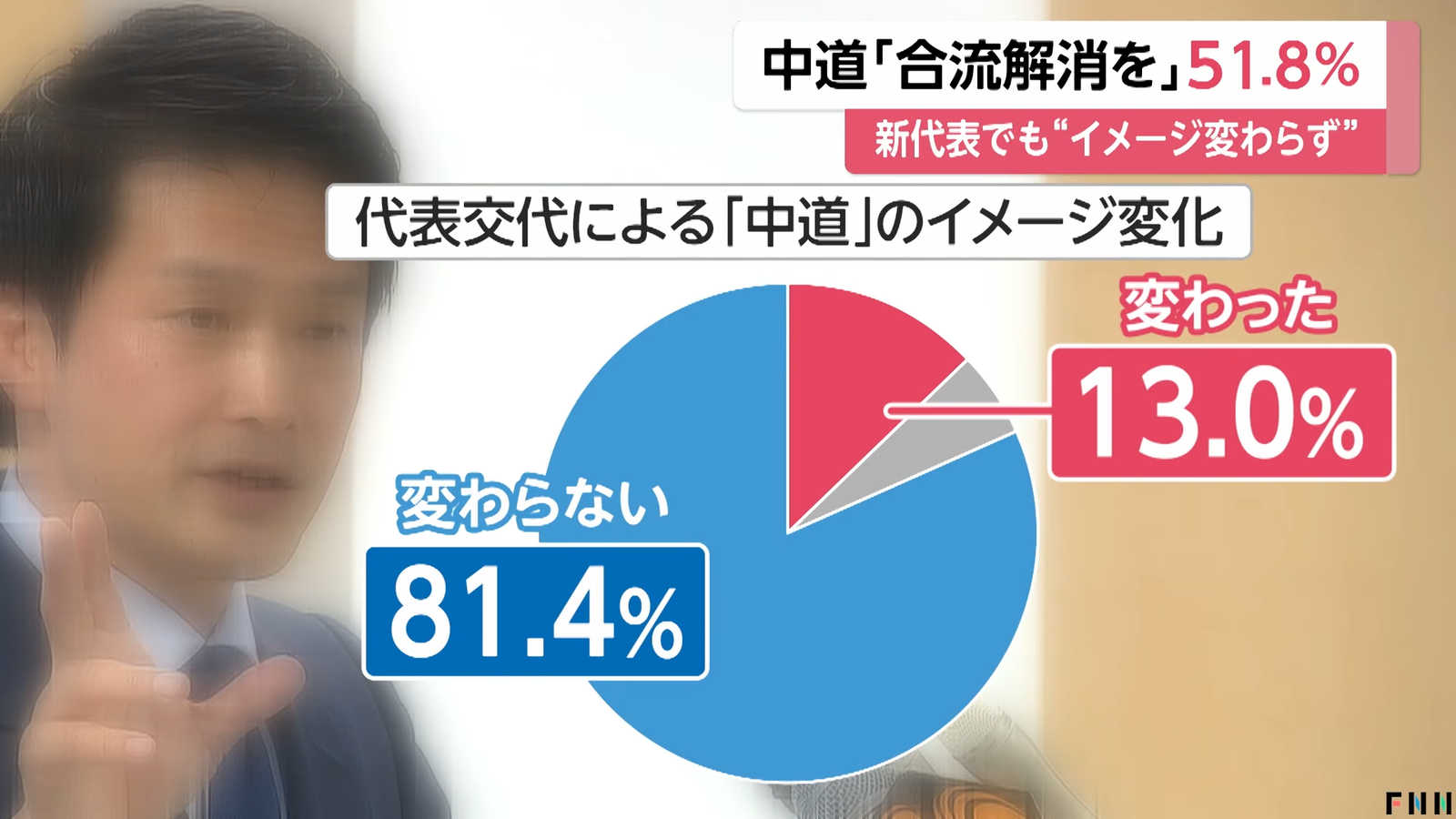 > 「立憲と公明に分かれた方がよい」が過半数の51.8%を占めました。