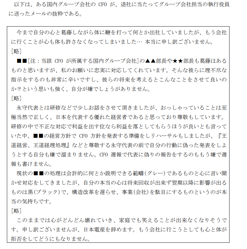 日本電産グループ会社CFOの退職メール...