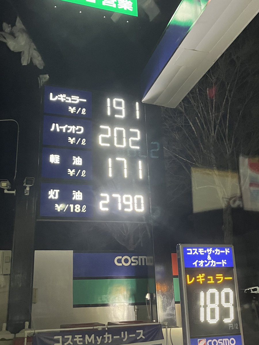 行列待ってアイドリングしてガソリン減らすより減ったら入れた方が効率的と思ってたけど高市が170円以上にならんように補助金出すって言ったし正解だった