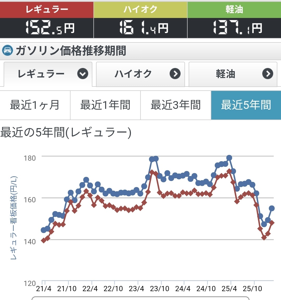 近くのガソスタ何円になったから気になるから後で見てくるか