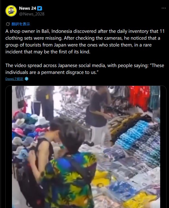 インドネシア・バリ島で男子生徒らが集団万引きする映像拡散 京都の大谷中学・高校が「窃盗行為」認めて謝罪