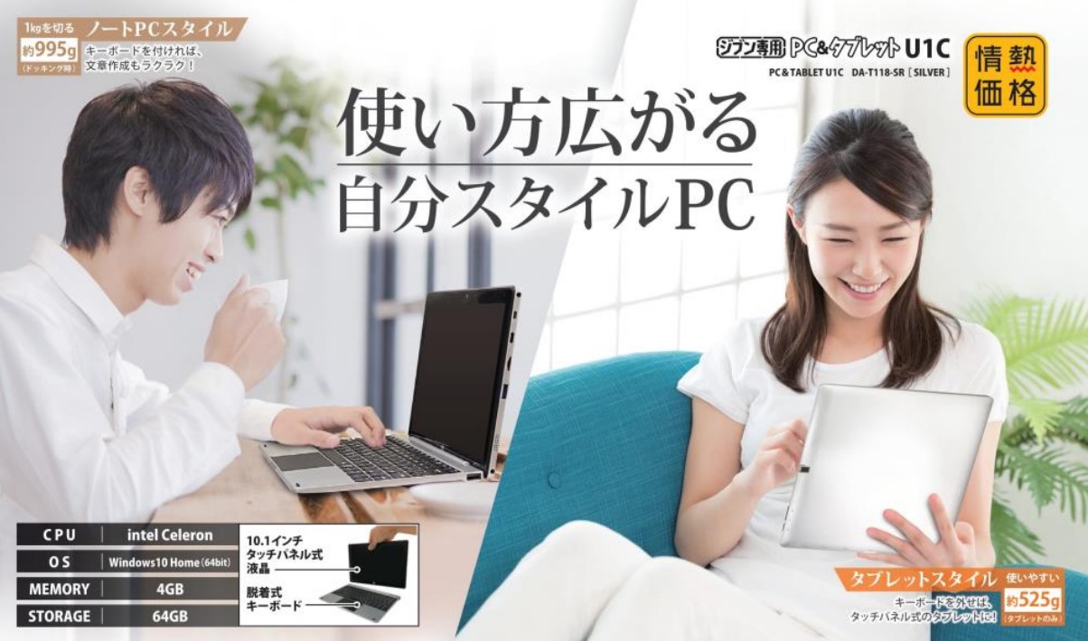 ドンキ、新型の19,800円パソコン「ジブン専用PC&タブレットU1C」を発売