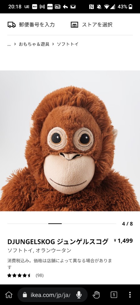 【悲報】ワイが買ったオランウータンのぬいぐるみ、顔がホームページの画像と違いすぎる