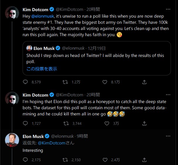 イーロン・マスク「Twitter有料会員のみが投票できるように変更するわ」 TwitterCEO辞任すべきかの投票結果はノーカンになった模様
