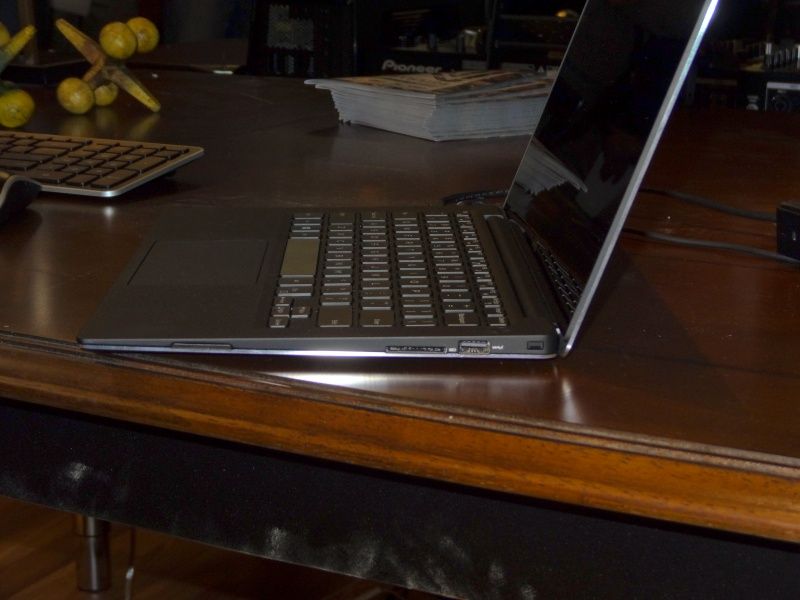 ベゼル幅が5.2mmという狭額縁筐体により、13.3型液晶を搭載しつつ11型級の筐体サイズを実現。同じ液晶サイズのMacBook Air 13インチより23%小型の筐体という。また、カーボンファイバーを筐体素材に採用したことで、剛性を確保しつつ、1.18kgの軽量化を果たした。一方で、プロセッサは先日発表された第5世代Core、液晶は最大で3,200×1,800ドット(QHD+)という高いスペックにしながらも、バッテリ駆動時間は最大で15時間(QHD+では12時間)を確保した。