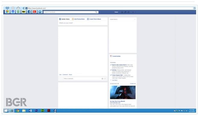 Facebookのページを読み込んだSpartanは、ミニマルデザインの軽量設計を目指している雰囲気を漂わせ、どことなくChromeブラウザに似たUI(ユーザインターフェース)を採用しているようにも見えます。