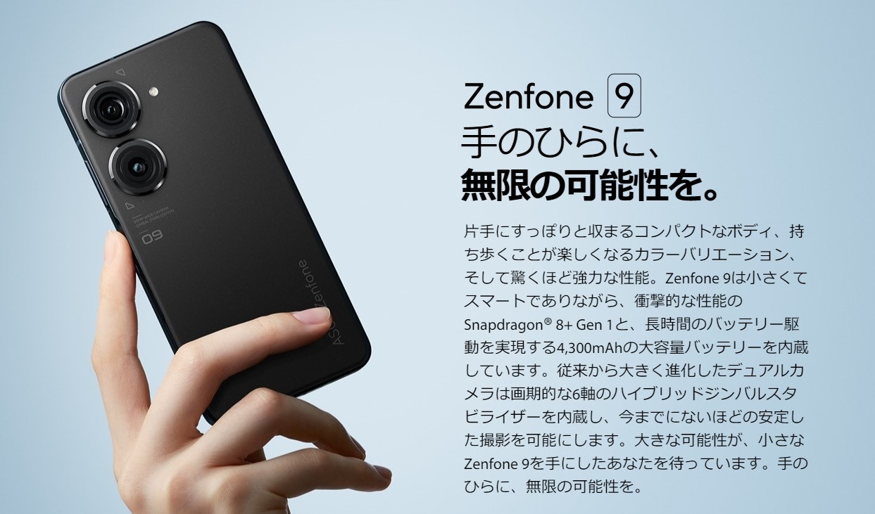 ASUS日本、ハイスペコンパクトスマホ「Zenfone 9」を11月2日に発表へ ティザーサイトを公開 2022年10月27日 カテゴリ:スマホ Tweet 10Comments 466: 名無し 2022/10/26(水) 11:10:28.51 ID:2XseBwema https://jp.store.asus.com/store/asusjp/html/pbPage.zenfone/ ティザーサイト 11/2発表 続きを読む タグ :#ASUS#Zenfone9 Zenfoneユーザーは799ユーロ(約10万9000円)のZenfone9買うの? 2022年07月29日 カテゴリ:スマホ Tweet 10Comments 1: 名無し 2022/07/29(金) 11:31:37.64 ID:447gBbyA0 Zenfone8ワイ、様子見で確定 3: 名無し 2022/07/29(金) 11:32:22.45 ID:XIPlgW1+r 良さそうやけど高いわ 続きを読む タグ :#ASUS#Zenfone9 ASUS、ハイスペコンパクトスマホ「Zenfone 9」を発表 8+Gen1/ジンバルカメラ/IP68防塵・防水 2022年07月28日 カテゴリ:スマホ Tweet 10Comments 台湾のメーカー ASUSは7月28日、Snapdragon 8+ Gen 1搭載の新フラグシップスマートフォン「Zenfone 9」をグローバル向けに発表しました。 続きを読む タグ :#ASUS#Zenfone9