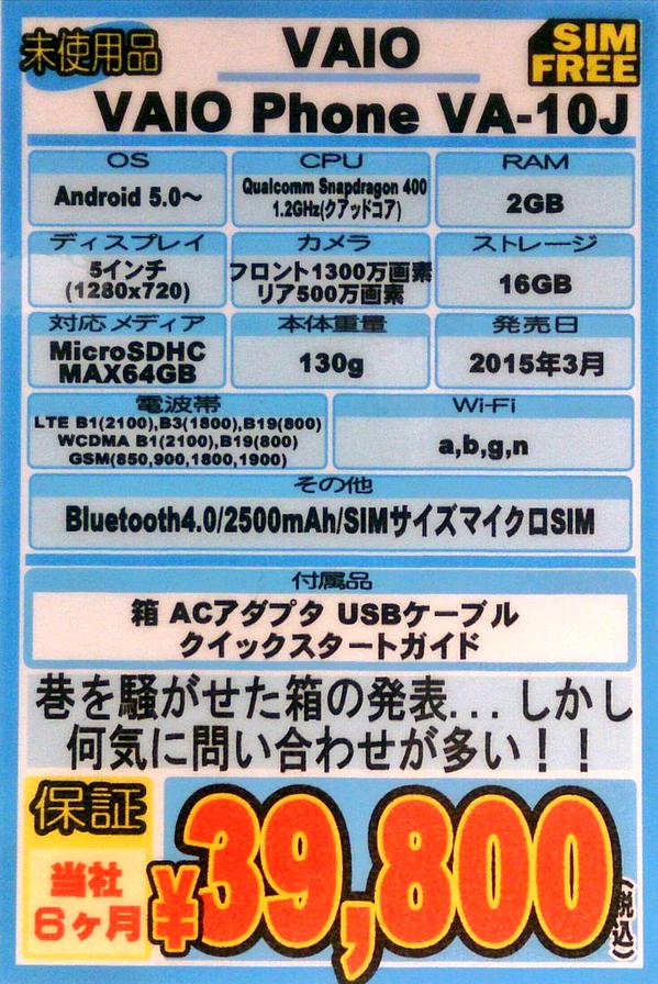 あのVAIO Phoneが遂に税込9,980円!イオシスで未使用品セール実施中